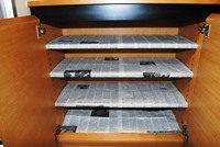 棚の一番下は3枚重ねの新聞紙を敷いて、
