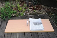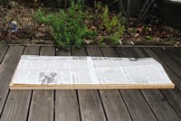 2枚重ねの新聞紙を、棚板のサイズに合わせて折り板の上にのせます。